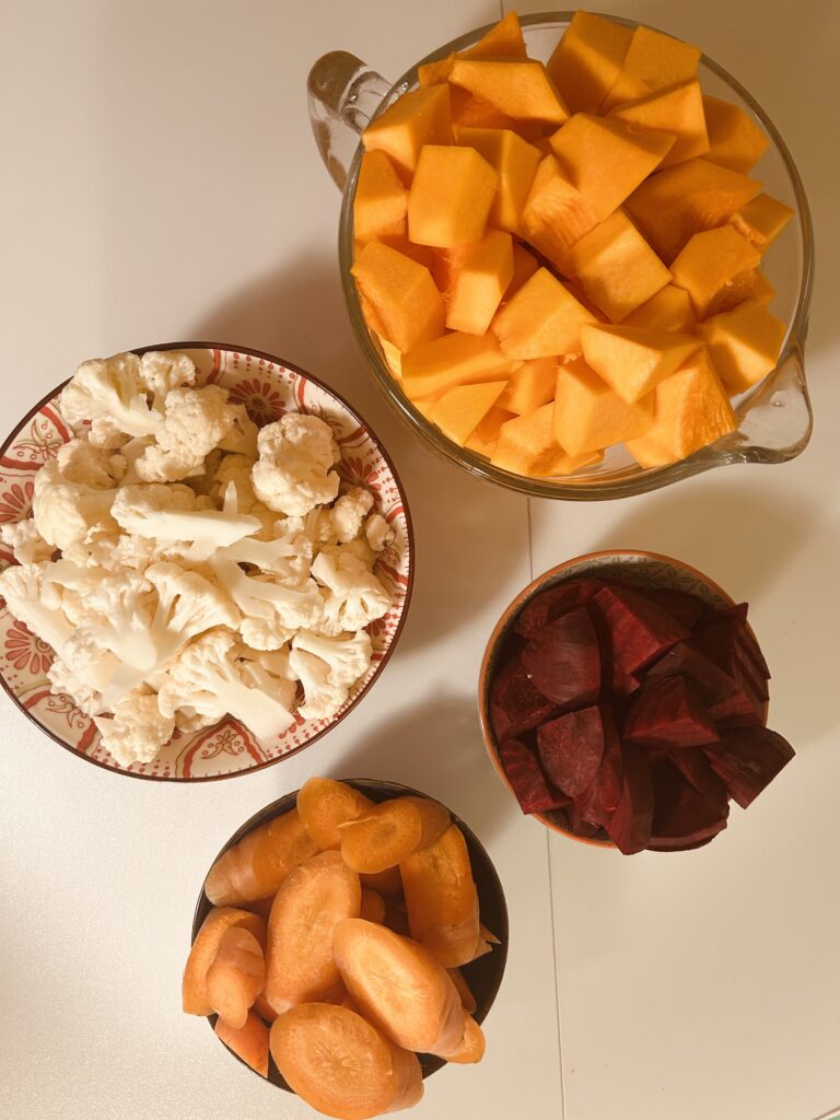 -Feel free to switch up the vegetables/amounts of them that you use! I love using other varieties of winter squash, sweet potatoes, Brussels sprouts, or broccoli, but use whatever you see fit. You will need 8 cups in total.